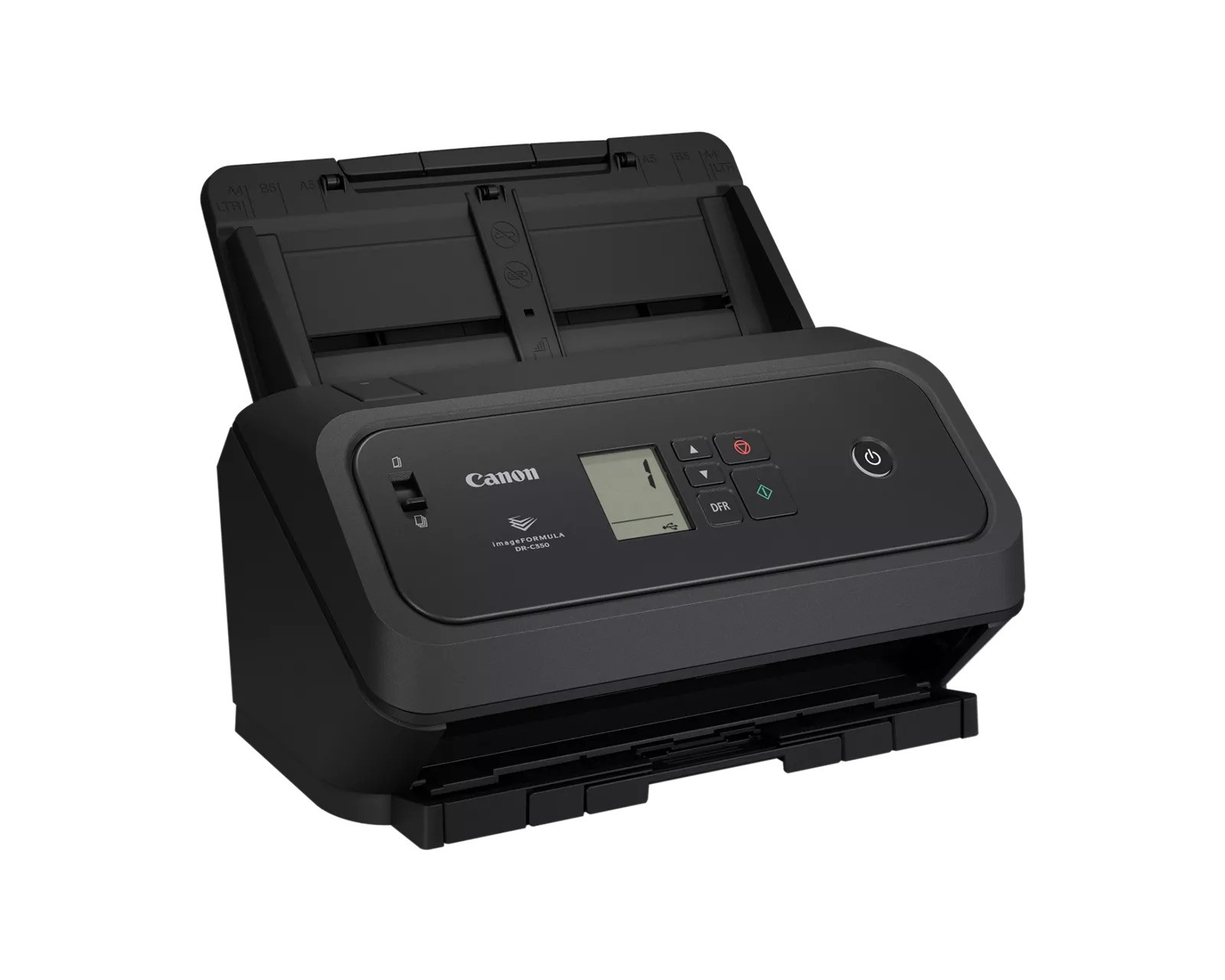 Designed with the user in mind, the imageFORMULA DRC350 scanner features an easy-to-use operation panel with an LCD display, intuitive icons, and simple controls that allow users to start scanning and select pre-configured job tasks with one-touch buttons and more. It can scan different sized documents in mixed batches to help eliminate the wasted time in pre-sorting document types. Bundled with both Canon CaptureOnTouch software, users can preconfigure scan tasks and choose from a wide selection of file distribution options. With CaptureOnTouch software, scanned documents can be sent directly to third-party cloud applications3 such as Microsoft® SharePoint®, Dropbox, Google Drive™, and OneDrive. This scanner is also bundled